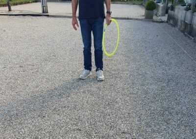 Nach der Ankunft am Boule-Platz wurden wir herzlich empfangen, und zur Stärkung standen bereits frische Brezeln sowie verschiedene Getränke bereit. Nachdem alle kurz in die Regeln und Grundtechniken des Boulespiels eingeführt worden waren, starteten wir voller Motivation in die ersten Runden. Von Beginn an herrschte gute Laune und Teamgeist – es wurde viel gelacht, angefeuert und natürlich ehrgeizig um jeden Punkt gekämpft. Zwischendurch begann es leicht zu nieseln, doch das hielt uns nicht davon ab, weiterzuspielen. Erst als der Regen kurzzeitig stärker wurde, suchten wir unter der Überdachung Schutz. Dort nutzten wir die Pause, um uns in gemütlicher Runde zu unterhalten, etwas zu trinken und über die bisherigen Spielzüge zu lachen. Nachdem der Regen nachgelassen hatte, setzten wir unser Spiel fort und spielten noch mehrere spannende Runden. Besonders schön war, dass trotz des wechselhaften Wetters alle mit Begeisterung dabei waren und der Spaß eindeutig im Vordergrund stand.